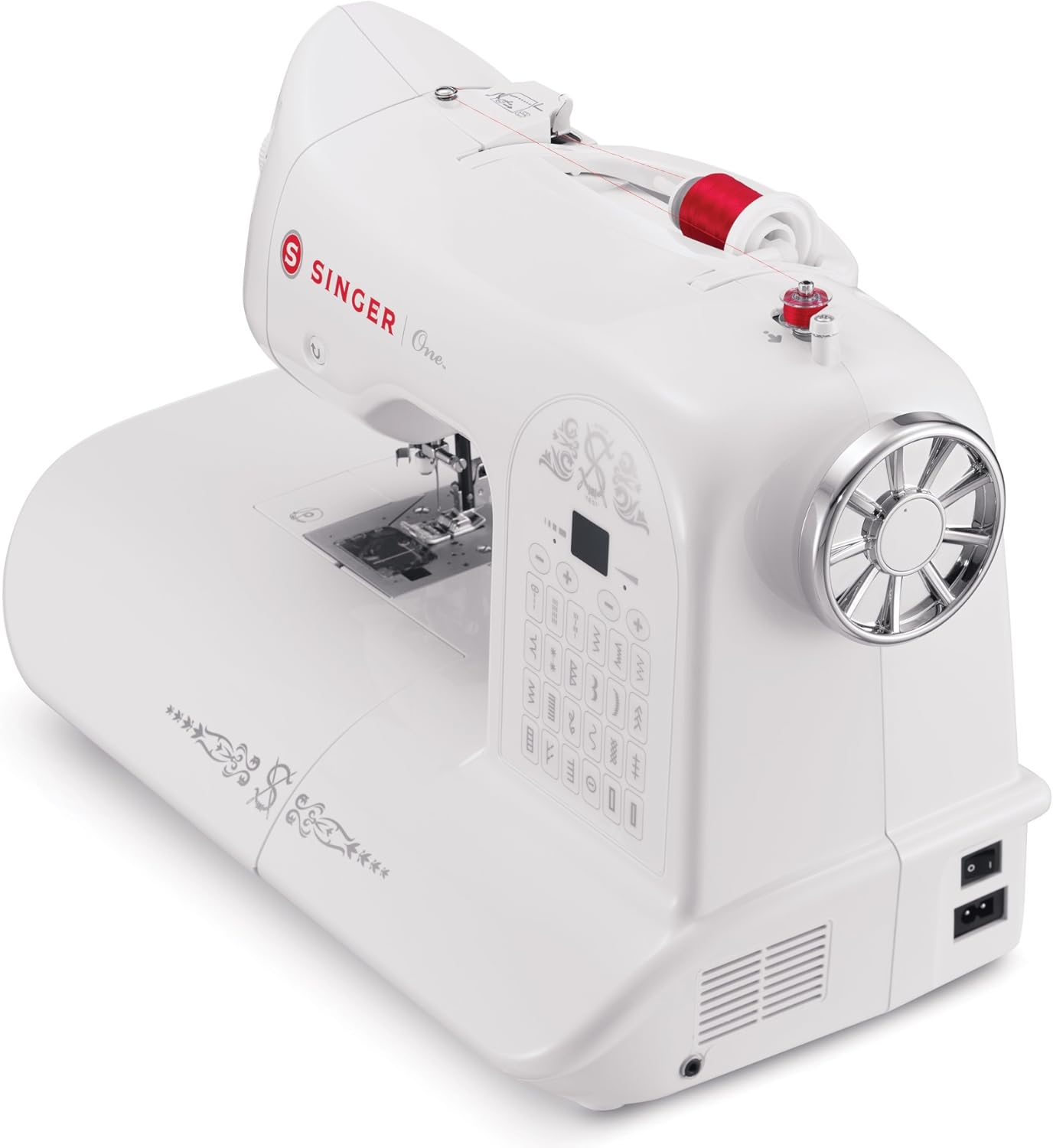 The SINGER ONE, at first glance, strikes the perfect balance between vintage charm and modern aesthetics. Its solid frame promises durability, while the sleek curves and gentle cream hue transport one back to the days of classic sewing.
